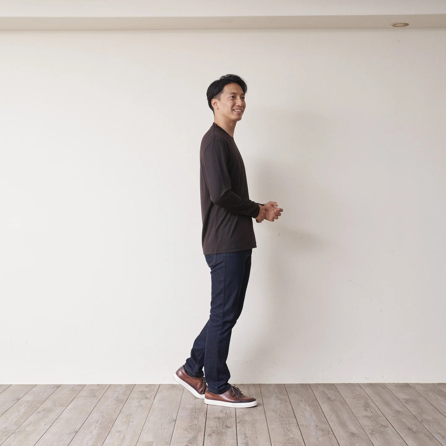 使用100%優質天然可自動調溫優質美麗諾羊毛的C HIGH END羊毛長袖T恤。深咖啡色、摩卡棕色、藍色、黑色,共有四種顏色供您選擇。穿去任何場合都百搭的款式,設計成恰到好處的合身感的輪廓,不限於男裝或是女裝的中性設計。是在任何場合都能搭配的實穿設計T恤長袖。為了在穿外套時不接觸皮膚,領口周圍設計得較高。 與傳統上衣相比,可以減輕對領子的摩擦和不協調感。 另外因為使用了高品質的細羊毛,所以觸感光滑,通氣性也很好,不容易產生悶熱感。 既使是夏天也能舒適地穿著。 由日本職人製作的羊毛上衣品質優良,與外套搭配性很好,從商務場合到休閒活動都能廣泛地穿搭。
