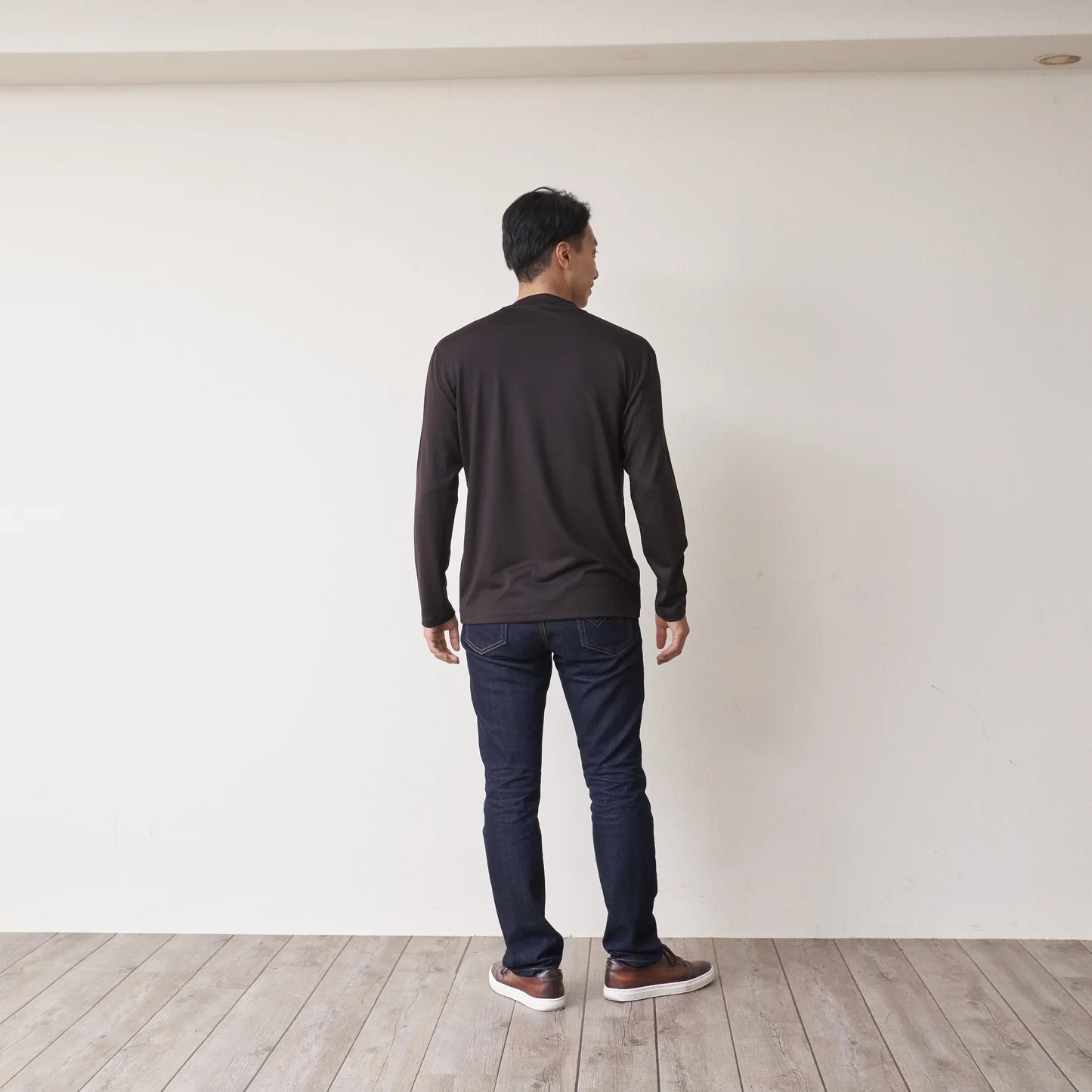 使用100%優質天然可自動調溫優質美麗諾羊毛的C HIGH END羊毛長袖T恤。深咖啡色、摩卡棕色、藍色、黑色,共有四種顏色供您選擇。穿去任何場合都百搭的款式,設計成恰到好處的合身感的輪廓,不限於男裝或是女裝的中性設計。是在任何場合都能搭配的實穿設計T恤長袖。為了在穿外套時不接觸皮膚,領口周圍設計得較高。 與傳統上衣相比,可以減輕對領子的摩擦和不協調感。 另外因為使用了高品質的細羊毛,所以觸感光滑,通氣性也很好,不容易產生悶熱感。 既使是夏天也能舒適地穿著。 由日本職人製作的羊毛上衣品質優良,與外套搭配性很好,從商務場合到休閒活動都能廣泛地穿搭。